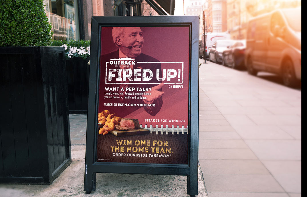 SITUATION Outback had sponsored their bowl game for 30 years, but the spark had faded. Fan engagement was flat, stores weren’t seeing traffic lifts, and leadership was questioning the ROI. We had less than $20K in production budget to turn things around—and only a few weeks to do it. TASK Reignite fan excitement around Outback’s Bowl Game sponsorship with a culturally relevant campaign that could punch way above its budget. The work had to be emotionally resonant, tap into the energy of college football season, and feel uniquely Outback—fun, fearless, and food-forward. ACTION I leaned into what I knew: sports fans love authenticity, not polish. And the most authentic voices in college football? Coaches. Especially the ones with real personality. • Built the concept “Steak Is for Winners”—a bite-sized wisdom series starring coaching legends who’ve lived it all. • Recruited Spurrier, Mack Brown, and Lee Corso—not just as talent, but as tone-setters. • Wrote and directed 15 quick-hit commercials that let each coach weigh in on life, love, bad bosses, fantasy football… all roads led to one truth: steak is the ultimate reward. Shot at three different locations over two weeks, using a lean crew and smart setups to stretch every dollar. Distributed the campaign across broadcast, social, in-store, and ESPN digital, aligning with bowl season and Fantasy Football peaks. RESULTS • 99% social video completion rate — almost unheard of in QSR • Featured in SportsCenter segments and across ESPN Bowl Game coverage • Social engagement jumped, with fans calling it the “funniest Outback campaign ever” • Reinvigorated the NCAA partnership, elevating brand sentiment and making Outback culturally relevant again • All on a shoestring production budget under $20K REFLECTION Sometimes, big ideas don’t need big budgets. They just need the right voice—and a little football magic. Steak Is for Winners wasn’t about a perfect spot; it was about a perfect fit. We tapped into the humor, honesty, and heart that fans love about the game—and reminded them that when you win at life, steak’s waiting.